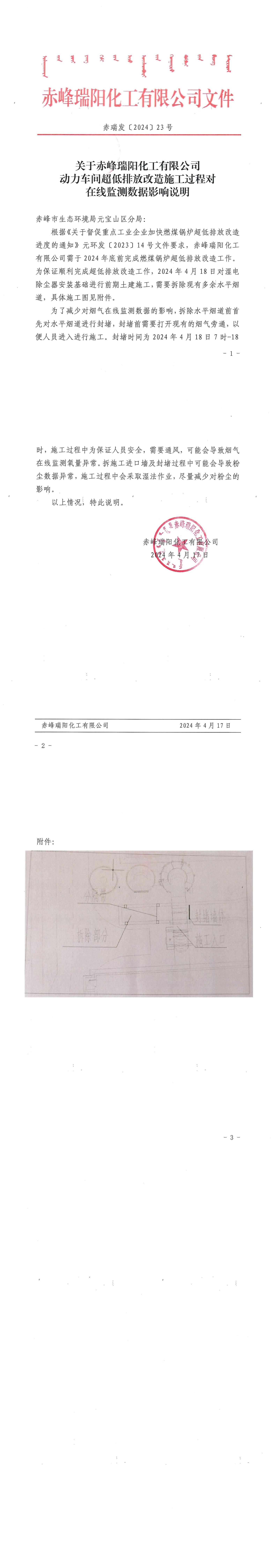 赤瑞發(fā)〔2024〕23號(hào):動(dòng)力車間超低排放改造施工過程對(duì)在線監(jiān)測(cè)數(shù)據(jù)影響說明